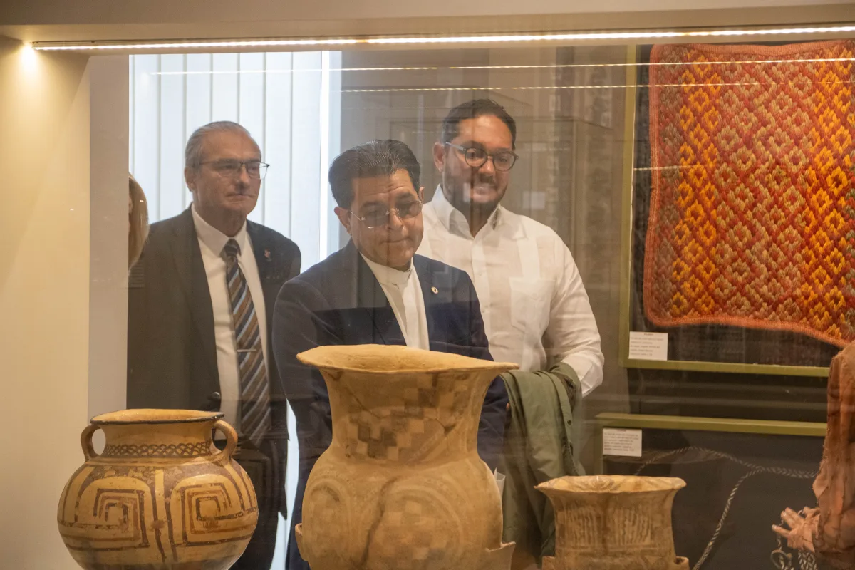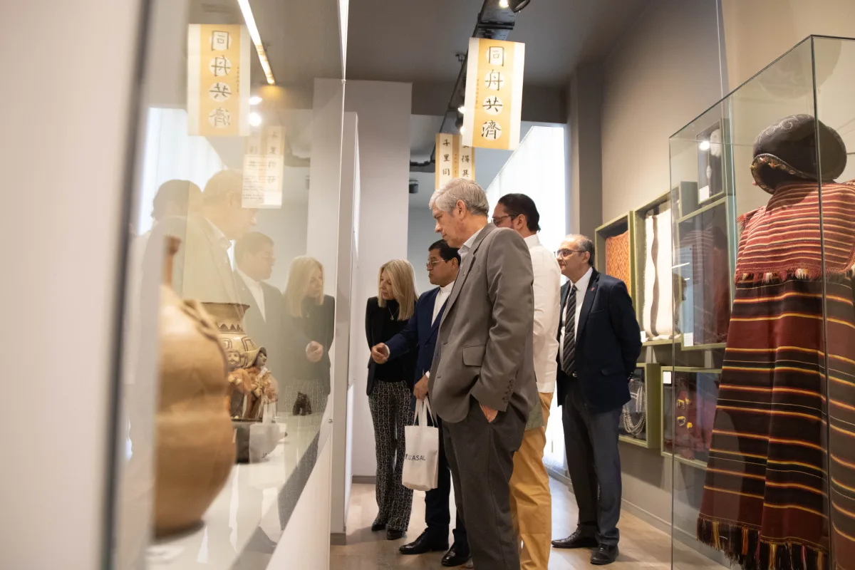 Durante la visita, las autoridades recorrieron espacios académicos y culturales de UCASAL, entre ellos el Museo Pajcha de Arte Etnográfico Americano, un centro que preserva y difunde la herencia cultural de los pueblos originarios del continente. El recorrido permitió conocer piezas que representan símbolos rituales, expresiones artísticas y elementos de identidad que forman parte del patrimonio antropológico americano.