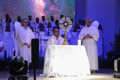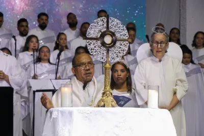 El evento incluyó también una conmovedora dramatización titulada “Los ‘Sí’ bíblicos: llave que abre los cielos”, que representó los actos de fe y obediencia de figuras como Abraham, Moisés, María, José y Jesús, culminando con la exposición y adoración al Santísimo Sacramento.