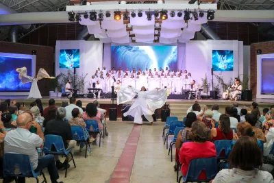 La actividad, realizada en el multiuso de la Universidad, tuvo como propósito exaltar a Dios a través de la música, y contó con la participación de miembros de diversas parroquias y movimientos de la Iglesia. Estudiantes, egresados y profesores unieron sus talentos en un emotivo repertorio de canciones, dramatizaciones y momentos de adoración.