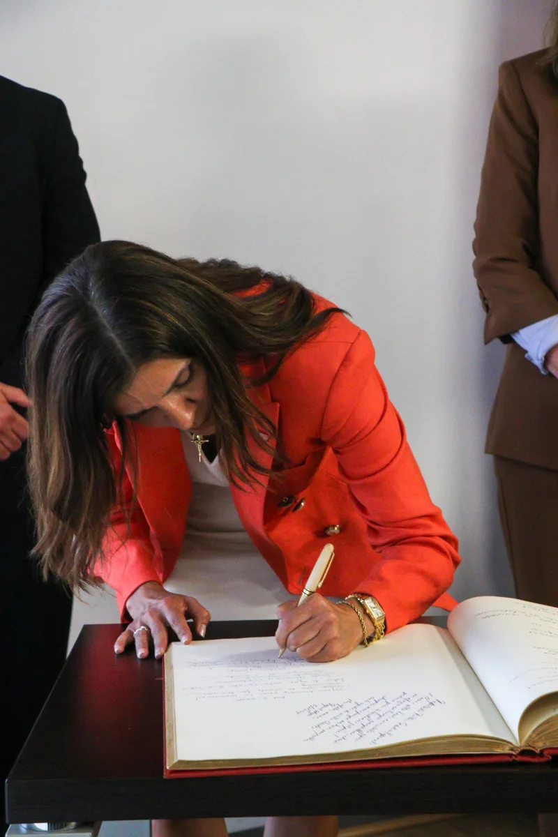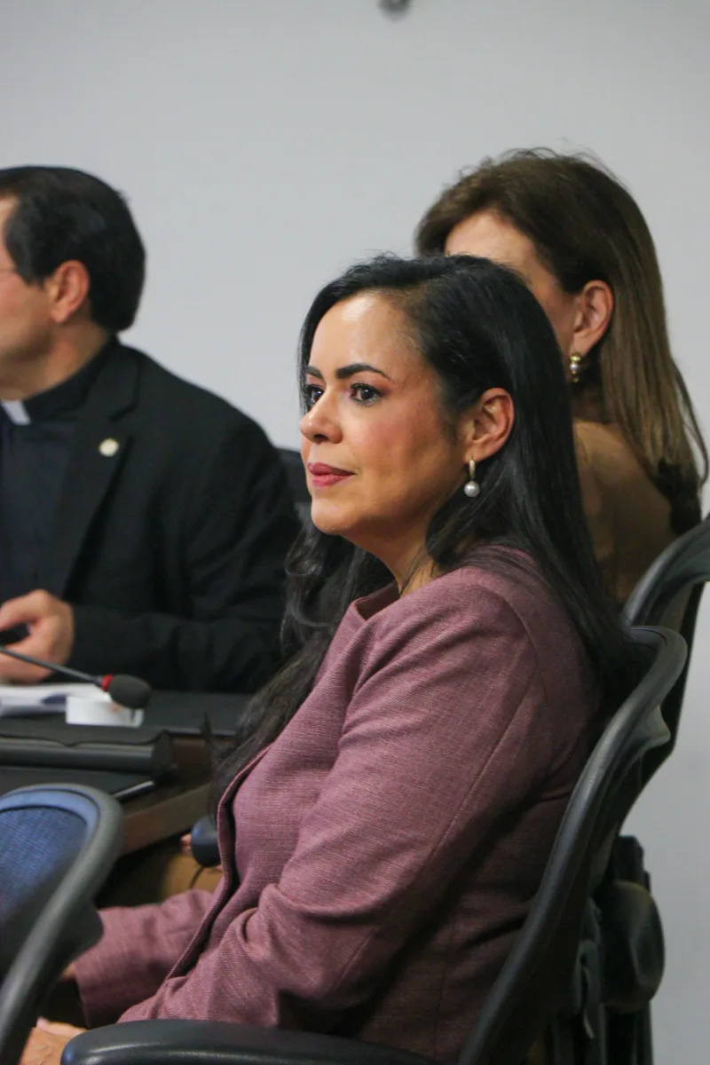 Al finalizar el encuentro, el rector Espinal guio a la embajadora en un recorrido por la capilla Nuestra Señora de la Anunciación, donde le mostró los recientes trabajos de remozamiento y compartió la importancia de este espacio para la identidad y la vida espiritual de la comunidad universitaria.