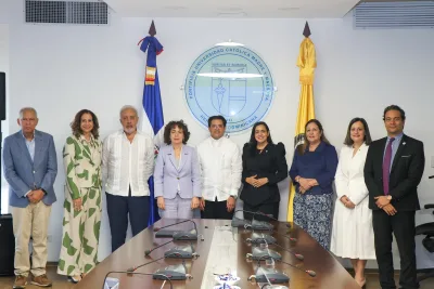 Santiago, R.D. – La Pontificia Universidad Católica Madre y Maestra (PUCMM) recibió la visita de su excelencia Lorea Arribalzaga Ceballos, embajadora de España en el país, quien fue recibida por el reverendo padre doctor Secilio Espinal, rector magnífico de esta academia, junto a miembros de la junta de directores, vicerrectores, decanos y directores.