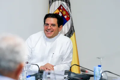El reverendo padre doctor Secilio Espinal presentó la trayectoria de la universidad, incluyendo el origen de sus campus, el crecimiento estudiantil, indicadores de empleabilidad y los principales logros alcanzados. Asimismo, resaltó los proyectos de innovación desarrollados desde el laboratorio de nanociencia, así como la relevancia de la investigación en semiconductores que lidera PUCMM.