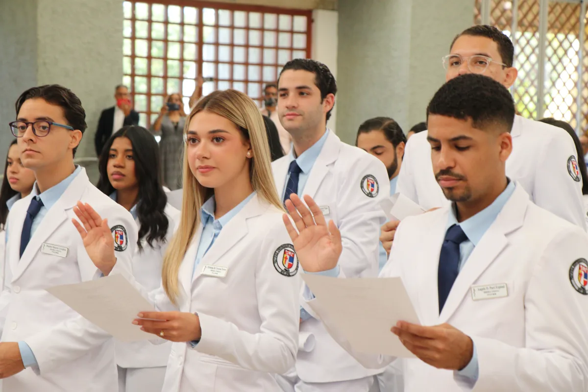 La entrega de plaquitas simboliza el paso de las aulas a la práctica clínica, tras haber superado con éxito los años de formación académica en las aulas de esta academia. Durante el acto, el reverendo padre doctor Secilio Espinal, rector de la universidad, destacó que se trata de un momento de júbilo y compromiso. “Ustedes inician formalmente esta nueva etapa de su formación profesional, y lo hacen con la responsabilidad de poner al servicio de los demás los conocimientos adquiridos”.