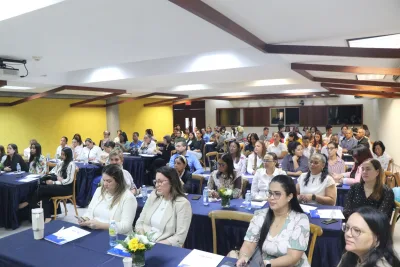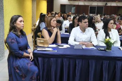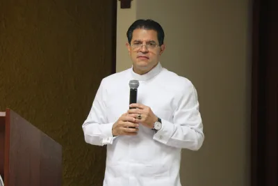 El encuentro tuvo como objetivo orientar a los participantes sobre los roles de las instituciones y ofrecer estrategias efectivas para acompañar a las familias ante situaciones emocionales o conductuales que puedan presentarse en menores. Aquí, el reverendo padre doctor Secilio Espinal dio las palabras de bienvenida y agradeció a los directores de centros educativos su presencia en este encuentro.