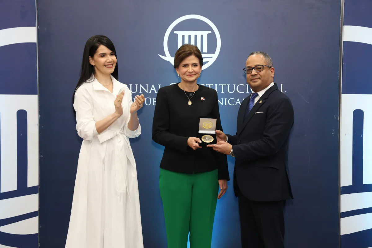 La magistrada María del Carmen Santana de Cabrera, integrante de la Comisión de Igualdad de Género, leyó la hoja de vida de la vicepresidenta Raquel Peña, conferencista invitada, quien al finalizar recibió la medalla Rosa Protomártir Duarte y Díez.