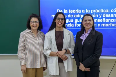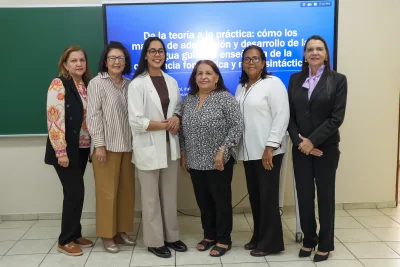 Santiago, R.D.- La Escuela de Lenguas de la Pontificia Universidad Católica Madre y Maestra (PUCMM) llevó a cabo el taller titulado “De la teoría a la práctica: cómo los marcos de adquisición y desarrollo de la lengua guían la enseñanza de la conciencia fonológica y morfosintáctica”, como parte de la Cátedra UNESCO en Formación Docente e Investigación en Lectura y Escritura.
