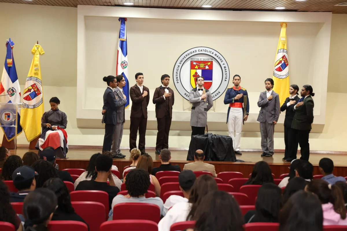 Santo Domingo, R.D.- El Departamento de Estudios Generales de la Pontificia Universidad Católica Madre y Maestra (PUCMM) celebró la conferencia “Duarte, la Constitución y los símbolos patrios”, impartida por Wilson Gómez Mejía, presidente del Instituto Duartiano, quien abordó el surgimiento y la evolución de los símbolos patrios, dentro de las actividades conmemorativas del Mes de la Patria.