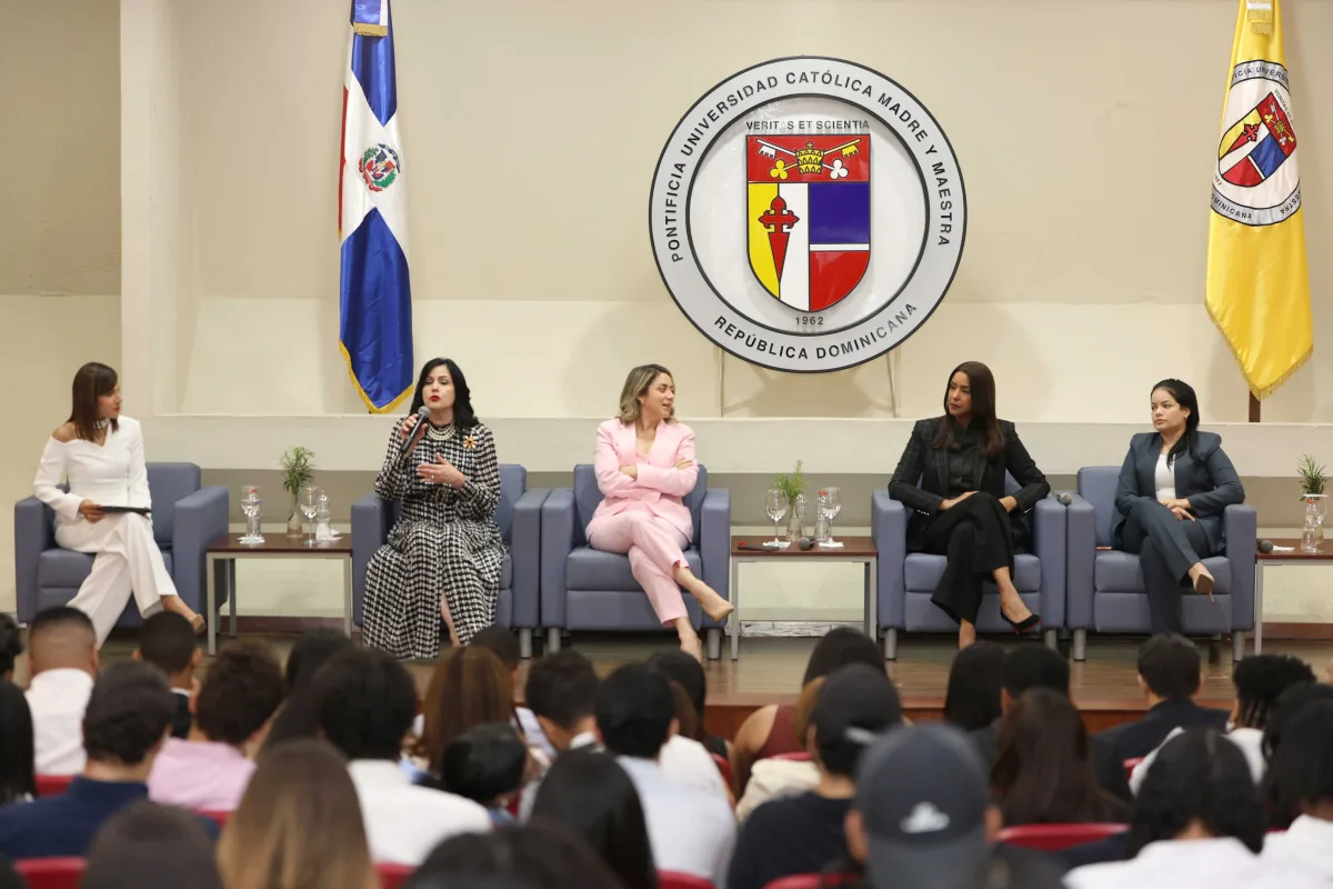 Santo Domingo, R.D.- La Escuela de Derecho de la Pontificia Universidad Católica Madre y Maestra (PUCMM) celebró es miércoles el conversatorio “Mujeres que deciden: Justicia, Política y Empresa”, un espacio de diálogo que reunió a destacadas líderes para analizar el rol de la mujer en la institucionalidad, la justicia, la política, la academia y la empresa.