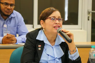 Este evento se desarrolló como parte de las actividades de la Cátedra UNESCO en Formación Docente e Investigación en Lectura y Escritura. “La lengua es esencialmente oral y debemos enseñarla de manera formal. Así que, para un eficiente desempeño de la persona, en los diferentes escenarios, no basta con lo que se aprende en el hogar, sino que se hace necesario abordarla en la academia, desde su formalidad”, expresó al dar la bienvenida la doctora Ydeana Ramírez, directora de la Escuela de Lenguas del campus de Santiago y coordinadora de la Cátedra.