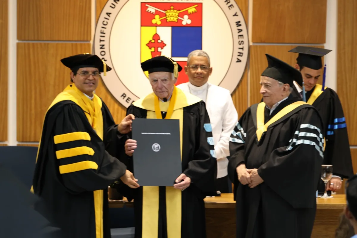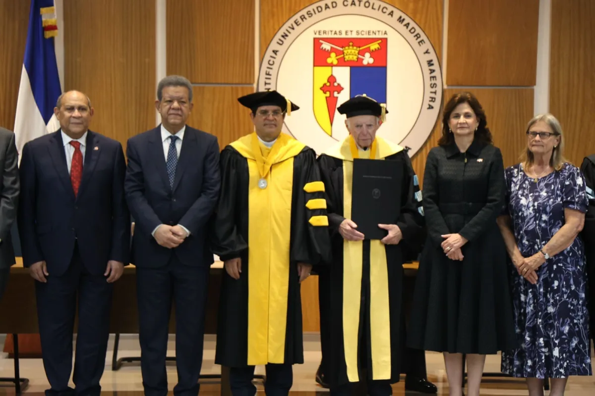 Santiago, R.D.- La Pontificia Universidad Católica Madre y Maestra (PUCMM) otorgó este viernes el título de Doctor Honoris Causa en Humanidades al destacado catedrático estadounidense Abraham Frederic Lowenthal, como reconocimiento a sus valiosos aportes al pensamiento, la investigación y el desarrollo de las relaciones internacionales y las ciencias sociales.