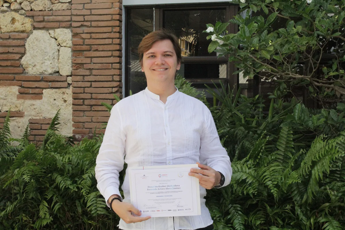 Denys Merkushev logró tercer lugar en la categoría Ingeniería y Tecnología, con el proyecto “Caracterización mejorada de nanopartículas de plata mediante el uso de puntas de nanocono de carbono (CnC) en microscopía de fuerza atómica (AFM)” , en la que el alumno analizó las propiedades del nanocono de carbono, un nanomaterial con potencial para ser utilizado en semiconductores.